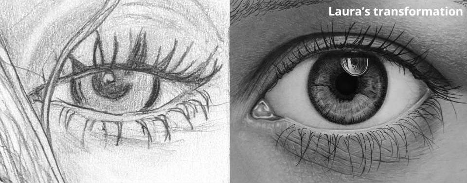 • A full real-time eye draw-along project: watch every pencil stroke in detail so you’re never stuck on what to do next.